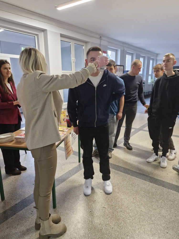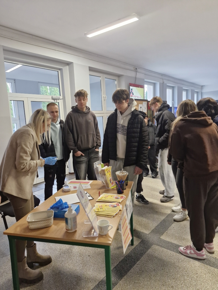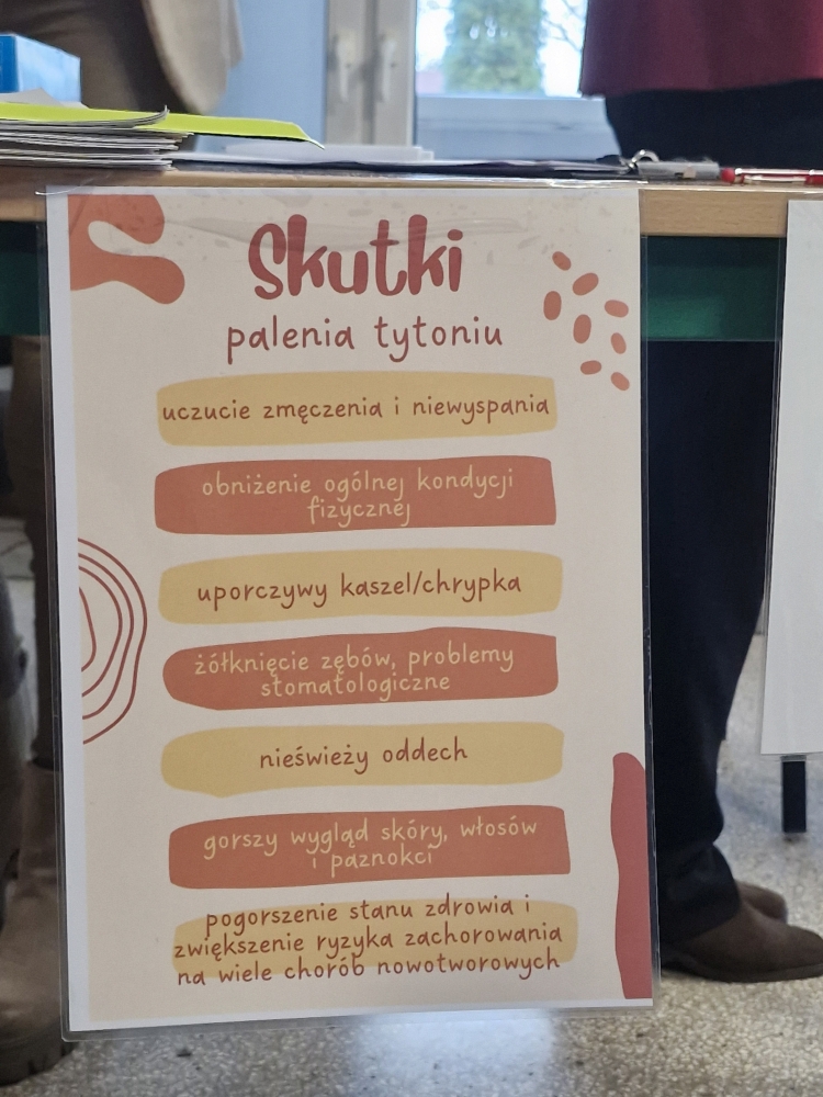 Dnia 25 listopada 2025r. do naszej szkoły przybyły Panie z Powiatowej Stacji Sanitarno-Epidemiologicznej w Wolsztynie. Powodem przybycia był obchodzony 20 listopada  br. Światowy Dzień Rzucania Palenia.