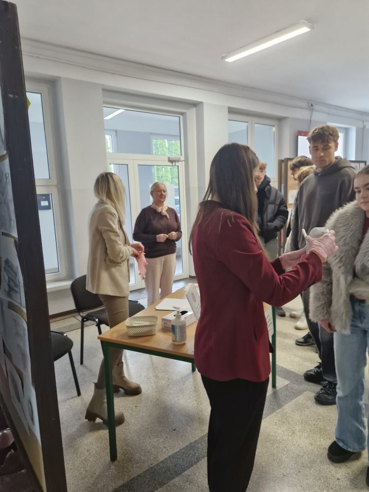 Każdy z chętny pełnoletni uczeń lub pracownik szkoły miał możliwość zbadania swoich płuc za pomocą spirometru. Chętnych nie brakowało i Panie miały pełne ręce roboty. Uczniowie otrzymywali również ulotki dot. szkodliwości palenia.