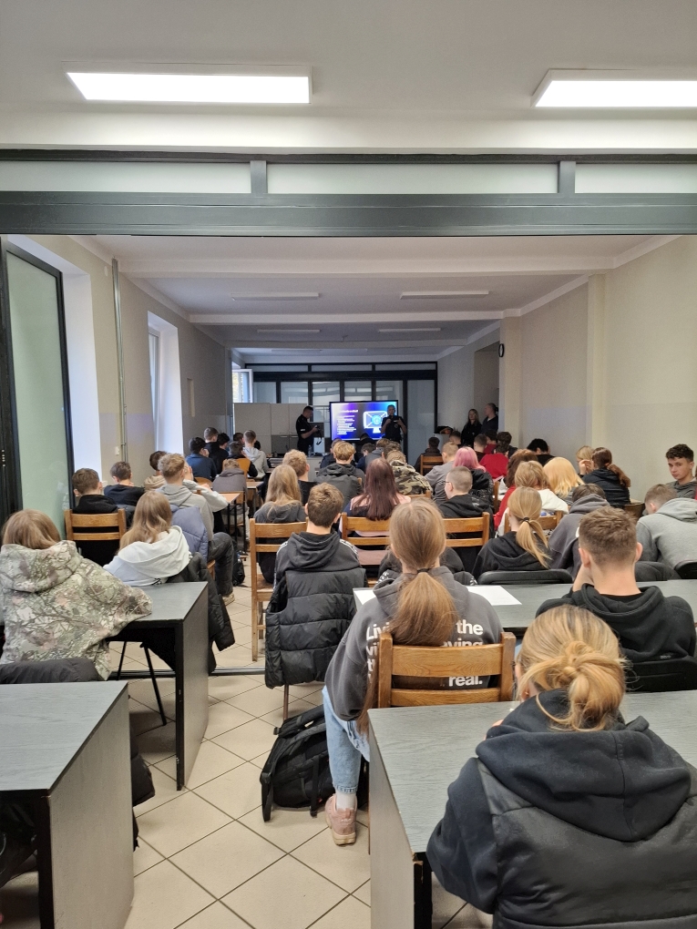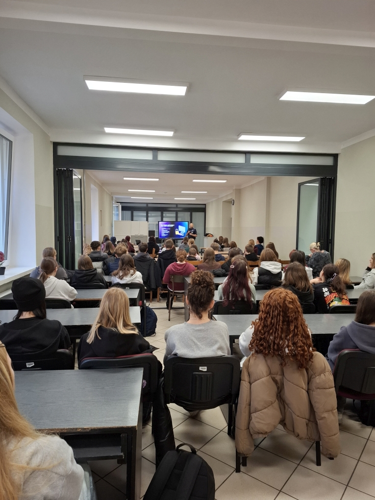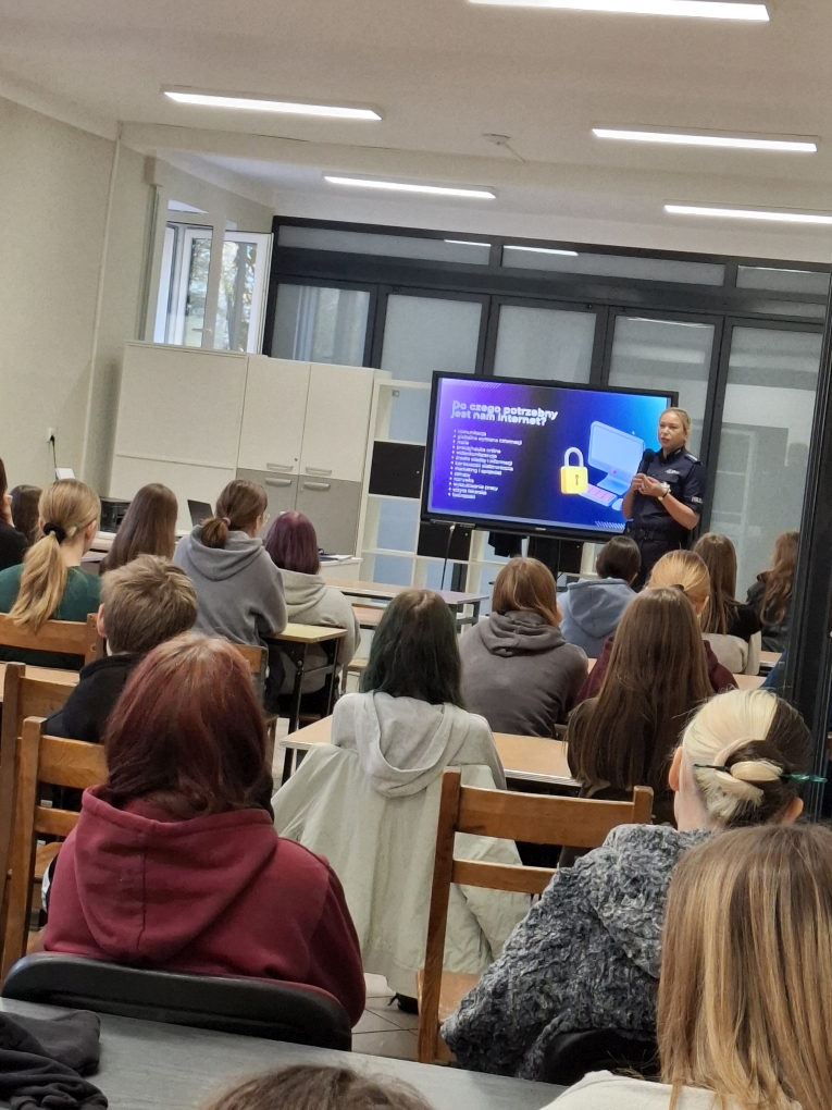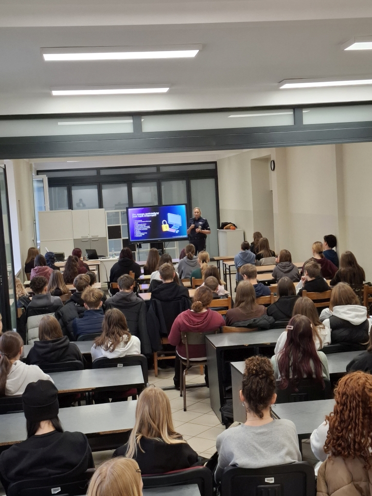 W dniu 6 listopada 2025 r. uczniowie klas I wzięli udział w debacie pt. "Cyberzagrożenia.   Jak radzić sobie z przemocą w sieci?". Debatę poprowadzili policjanci KPP Wolsztyn, st .asp. Katarzyna Kucharczak z Zespołu Prewencji Kryminalnej, Nieletnich i Patologii oraz asp. sztab. Dariusz Ptak Kierownik Rewiru Dzielnicowych. Podczas spotkania poruszono kwiestie związane z bezpieczeństwem, zagrożeniami związanymi z siecią oraz negatywnymi skutkami przemocy rówieśniczej. Funkcjonariusze przekazali dodatkowo informacje na temat odpowiedzialności  nieletnich wobec prawa. Młodzież brała aktywny udział w debacie.