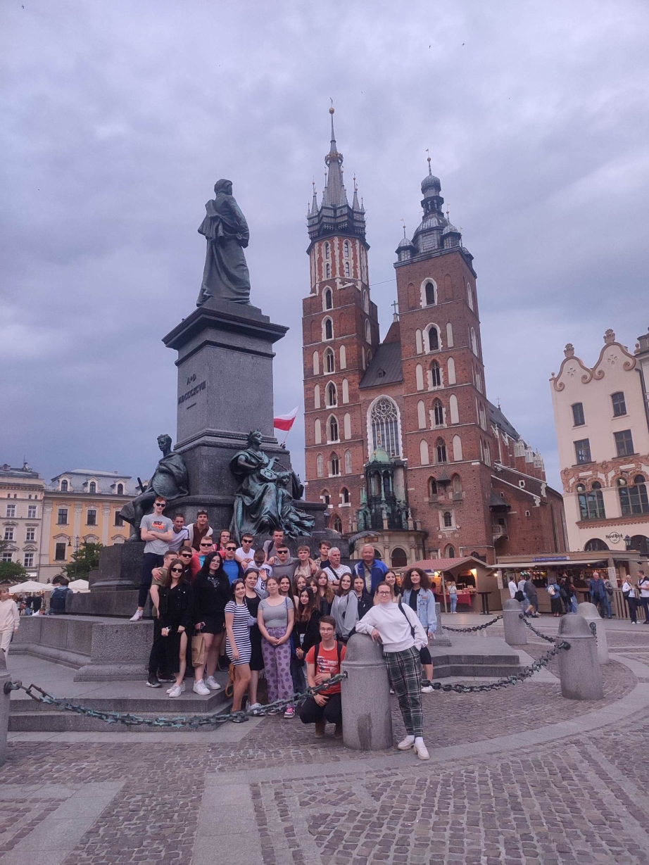 Pamiętając zeszłoroczny wyjazd uczniów naszej szkoły do Krakowa w ramach projektu „Poznaj Polskę”, postanowiliśmy powtórzyć te miłe przeżycia. Klasa 2TŻ i 2TM wraz z kilkoma znajomymi złożyła najpierw wizytę w Miejscu Pamięci Auschwitz a po przyjeździe do dawnej stolicy spotkała się z jej symbolem – Smokiem Wawelskim. Drugiego dnia sprawdziliśmy, jak wygląda zalany wodą kamieniołom Zbiornik Zakrzówek i jak szybko można wejść na Kopiec Kraka. W obu tych miejscach można było zrobić urokliwe zdjęcia okolicy. Idąc w stronę dzielnicy żydowskiej Kazimierza przeszliśmy kładką Ojca Bernatka nad Wisłą, minęliśmy kolorowe schody i trafiliśmy do okrąglaka, gdzie był duży wybór przekąsek lunchowych.