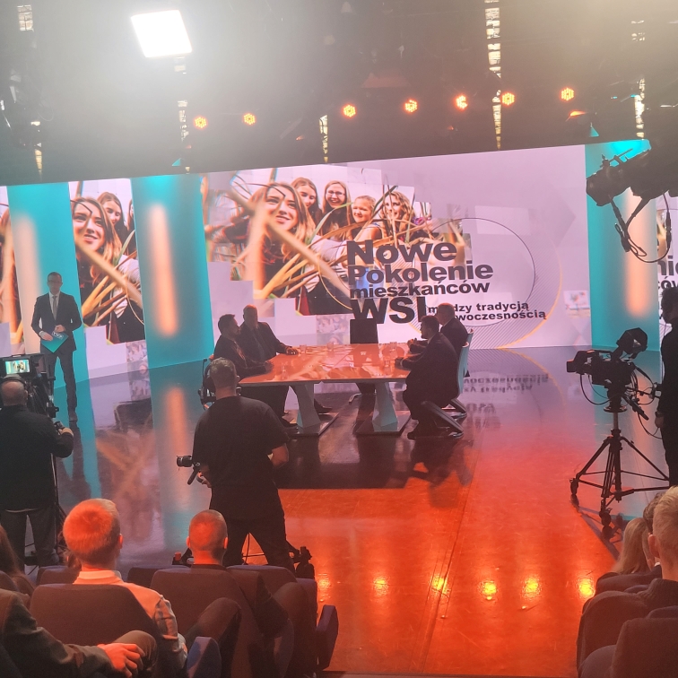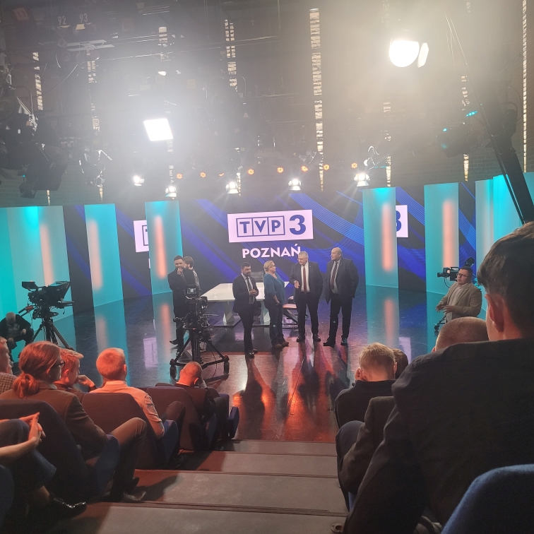 Dnia 20 listopada 2025r. przedstawiciele uczniów naszej szkoły – łącznie 20 osób – udali się do siedziby Telewizji Polskiej  w Poznaniu (TVP 3), na debatę  pod nazwą „Nowe pokolenie mieszkańców wsi. Miedzy tradycją a nowoczesnością”. Byliśmy jedną z 5 szkół z terenu województwa wielkopolskiego, zaproszoną na debatę. Program rozpoczął się o godzinie 18.45 i trwał 45 minut, nadawany był na żywo. W programie i dyskusji wzięli udział również goście specjalni  - Wice marszałek Województwa Wielkopolskiego, prorektor ds. młodzieży Uniwersytetu Przyrodniczego w Poznaniu, psycholog społeczny oraz Prezes Związku Młodzieży Wiejskiej w Polsce.