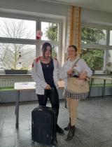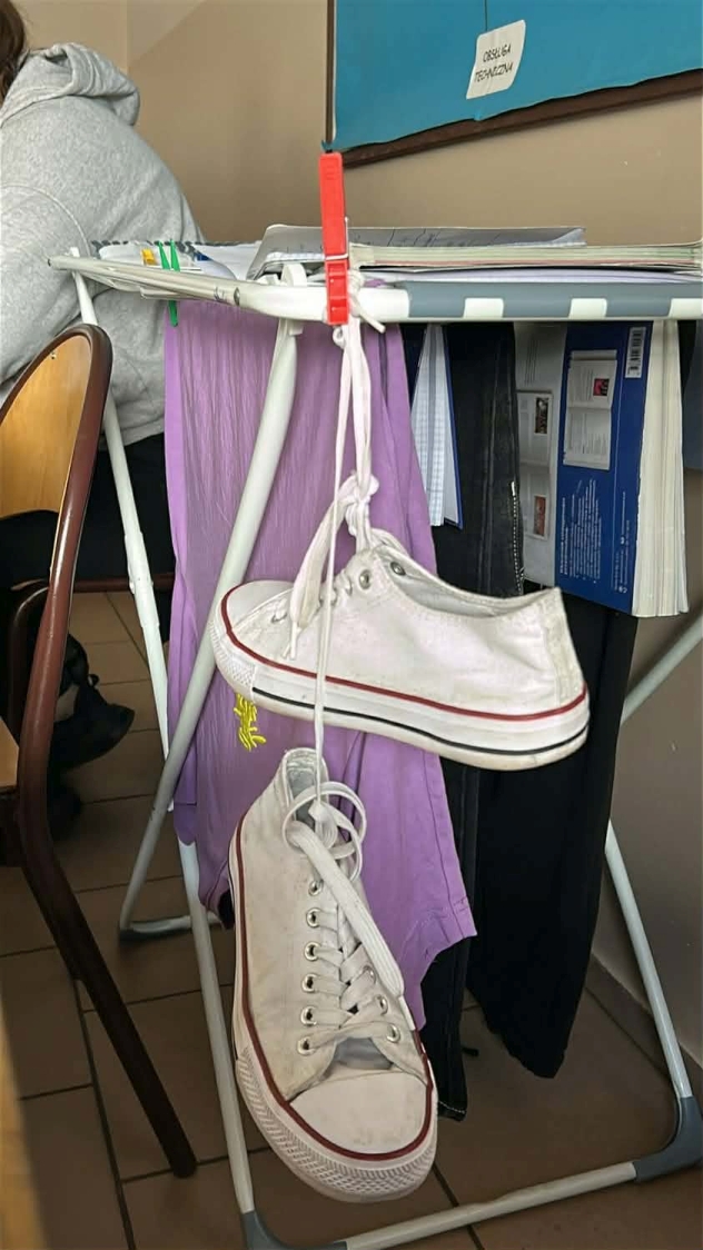 Za to świetnie bawiliśmy się na korytarzach widząc, w jakich rzeczach uczniowie przynieśli swoje książki i zeszyty, skoro ogłoszony był Dzień bez Plecaka!