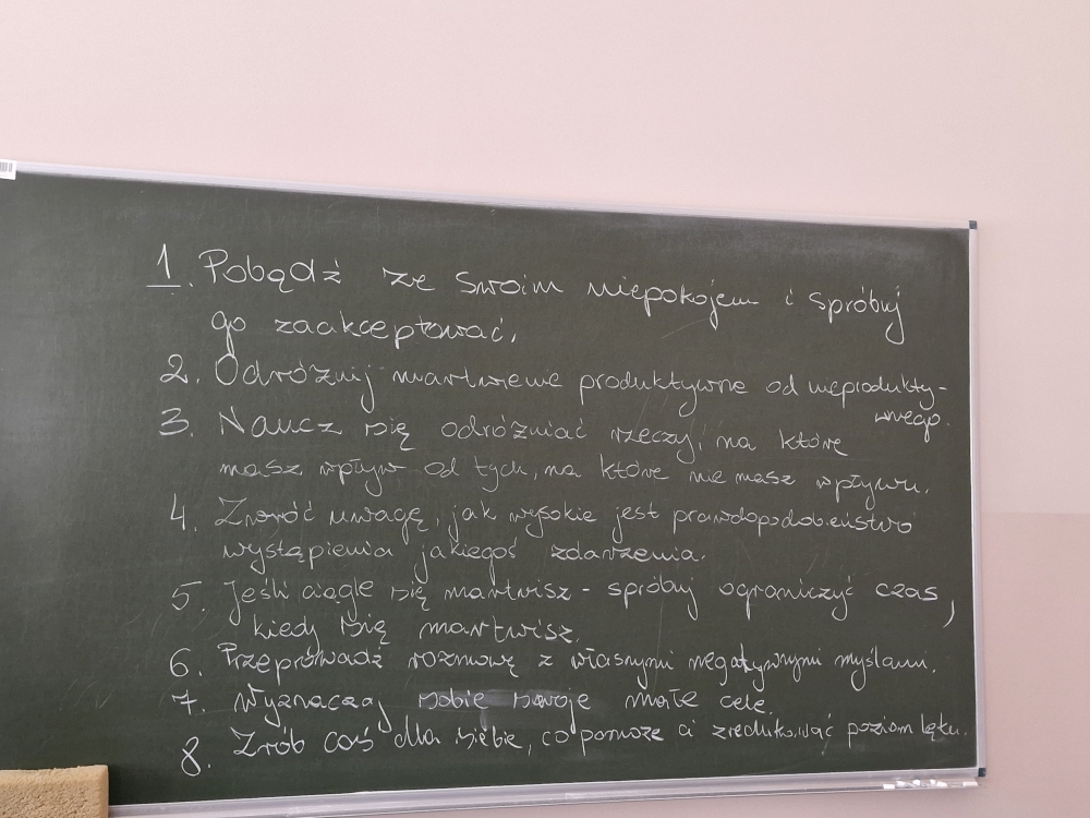 uczniowie klas I wzięli udział w zajęciach ,,Jak skutecznie radzić sobie z lękiem, by sprzyjało to dbaniu o zdrowie psychiczne