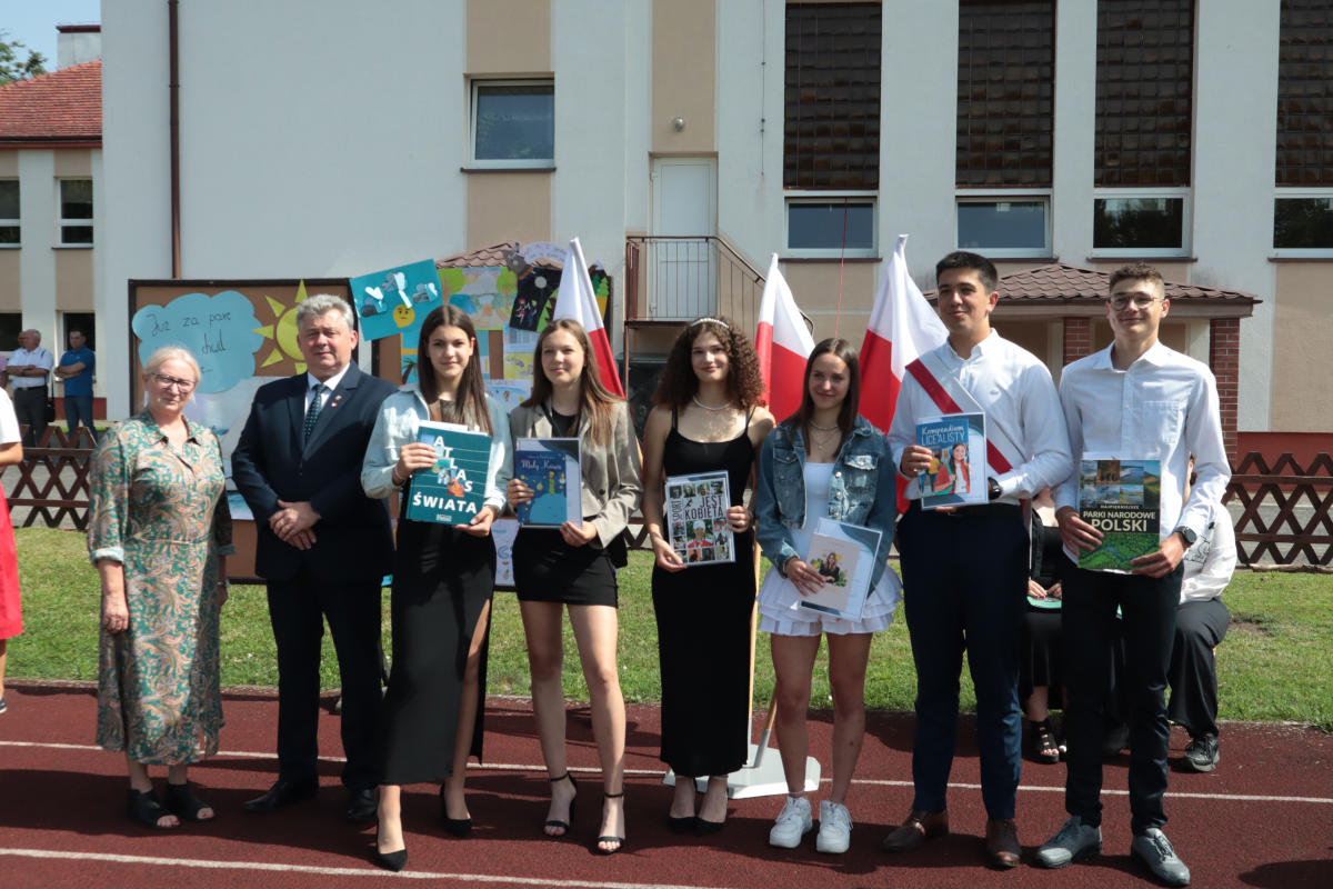 Pan starosta Jacek Skrobisz pogratulował wyróżnionym uczniom wyników w nauce oraz sporcie i wręczył przyznane nagrody. Rada Rodziców również doceniła najlepsze świadectwa fundując swoje stypendia - wręczyła je przewodnicząca p. Anna Kotlarska.