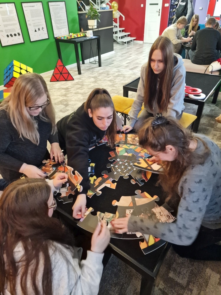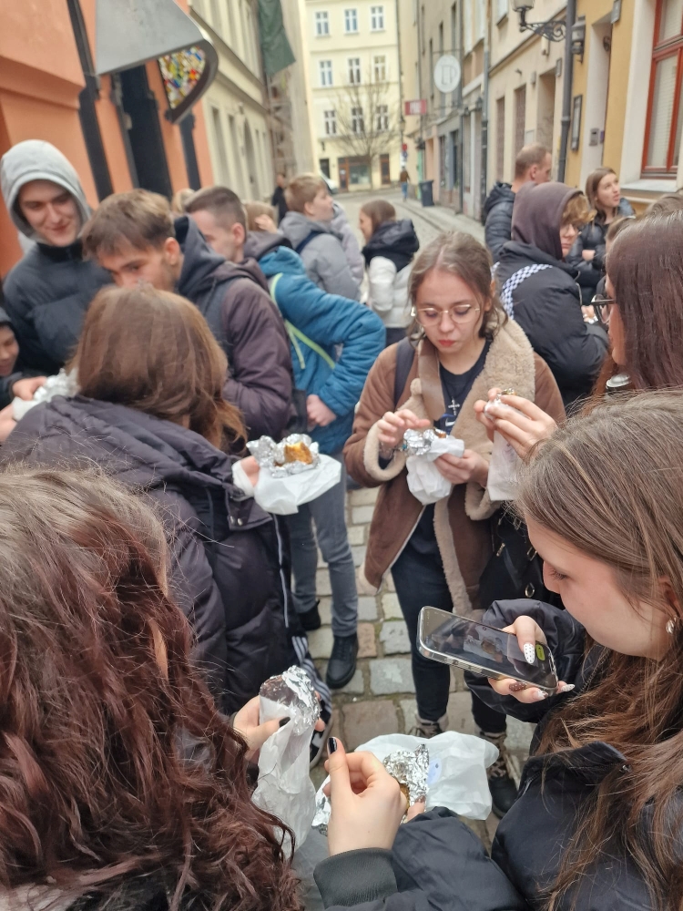 11 grudnia 40 uczniów wraz z opiekunami, p. Jagodą Bednarz i Natalią Łukaszewską wzięło udział w przedsięwzięciu finansowanym przez Ministerstwo Edukacji Narodowej WYJŚCIE Z KLASĄ; uzyskana kwota to 8544zł. Głównym celem wyjazdu było urozmaicenie procesu dydaktycznego, rozwijanie ciekawości poznawczej uczniów oraz praktyczne sprawdzenie ich zdolności w interaktywnym środowisku nauki i sztuki. Wycieczka była bogata w atrakcje o charakterze edukacyjnym i rozrywkowym. Pierwszym punktem było Muzeum Pyry, w którym przybliżono uczniom historię i znaczenie ziemniaka ("pyry") w kulturze i kuchni wielkopolskiej. Uczniowie mogli także dowiedzieć się o procesach uprawy i przetwórstwa, łącząc wiedzę przyrodniczą z historią. Następnie udaliśmy się do Muzeum Iluzji, Nauki i Sztuki gdzie uczniowie mieli okazję zapoznać się z fascynującymi eksponatami, które w przystępny sposób wyjaśniały prawa fizyki, optyki oraz percepcji. Interaktywne stanowiska pozwoliły uczestnikom na praktyczne sprawdzenie swoich zdolności analitycznych i logicznego myślenia. Duże zainteresowanie wzbudził również pokaz Iluzjonisty. Ostatnią atrakcją była Łamigłówkarnia, w której uczniowie rozwijali umiejętności pracy zespołowej oraz nieszablonowego myślenia, mierzyli się z różnorodnymi zagadkami i łamigłówkami, co było doskonałym treningiem umysłu. Przedsięwzięcie spotkało się z pozytywnym odbiorem przez uczniów.